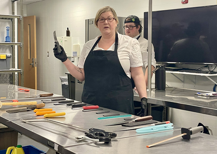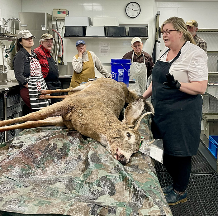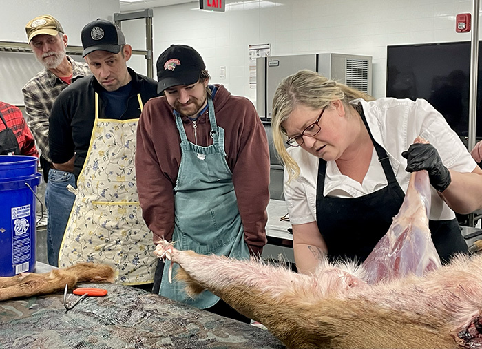 Of the 12 students — 10 men and two women — several (but not all) are hunters. Some said they’ve field dressed or even butchered their own deer, instructed by “old timers.” They wanted to learn “the right way” to do it.