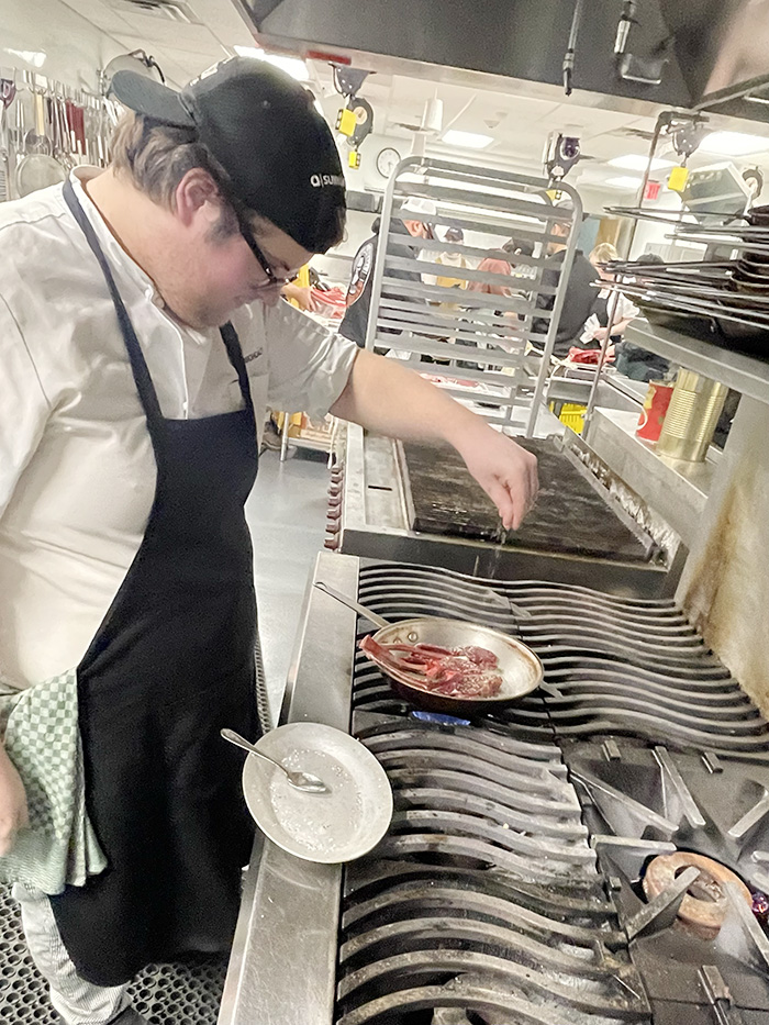 Josh Geczy, SUNY Adirondack Culinary Arts student, prepares venison “lollies” — a.k.a. rib chops — for students at the end of the butchering class, Sunday afternoon. Josh assisted Instructor Emily Petersen throughout. He’ll be teaching Continu