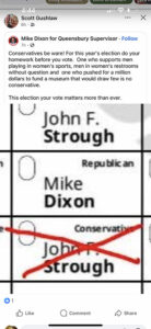 Mr. Dixon posted an image of this year’s ballot with a red X through Mr. Strough’s name on the Conservative line, “so people can see that John is on that ballot.”
