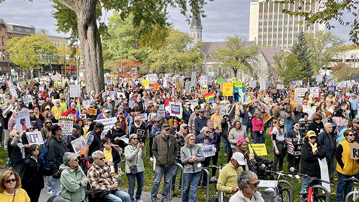 A massive turnout filled City Park, Glen Street and Bay Street in Glens Falls Saturday for the “No Kings” anti-Donald Trump rally in conjunction with events across the country.