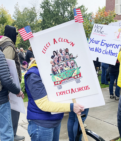 Like “these patriots,” she said, “who came from all over the region, as all of you have….we too are fueled by that same sense of desire for liberty, for justice, for equality, for everyone. Those are the values we stand for, the values our country was founded on…and it is a joy to be with all of you patriots today.”