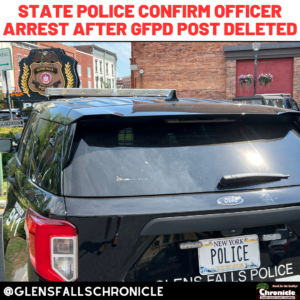 New York State Police confirmed to The Chronicle today that on Tuesday, December 2 they arrested former Glens Falls Police Officer John Hogan III for a “single charge of Petit Larceny, which is a Class A Misdemeanor.”