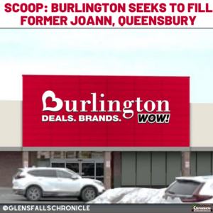 SCOOP • Zander Frost reports: Burlington (formerly Burlington Coat Factory) plans to open in the former JoAnn Fabrics location on Route 9 in Queensbury.